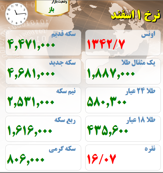 قیمت های بازار طلا و سکه امروز یکم اسفند ماه قیمت طلا و سکه در بازار تهران تاریخ: ۱/اسفند/۹۷ ساعت ۱۱:۱۵ | اقتصاد ایران شناسه خبر: ۵۱۵۲۶ منبع: سایت طلا خبر را برای من بخوان قیمت های بازار طلا و سکه امروز یکم اسفند ماه : (لحظه تنظیم خبر) برچسب ها : مظنه طلا قیمت طلا قیمت سکه طلا و سکه سکه امامی