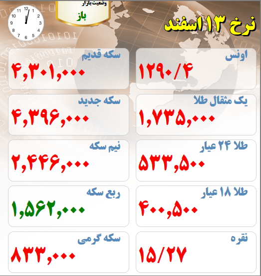قیمت های بازار طلا و سکه امروز سیزدهم اسفند ماه قیمت طلا و سکه در بازار تهران تاریخ: ۱۳/اسفند/۹۷ ساعت ۱۱:۵۹ | اقتصاد ایران شناسه خبر: ۵۱۸۸۱ منبع: سایت طلا خبر را برای من بخوان قیمت های بازار طلا و سکه امروز سیزدهم اسفند ماه : (لحظه تنظیم خبر) برچسب ها : هر گرم طلا 18 عیار مظنه طلا قیمت سکه قیمت طلا