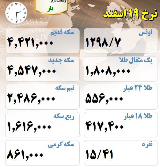 قیمت طلا قیمت 19 اسفند