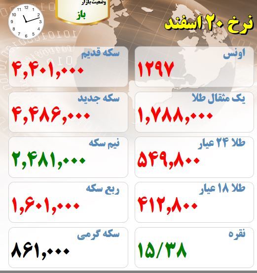 3. قیمت طلا و سکه بیستم اسفند / صبح