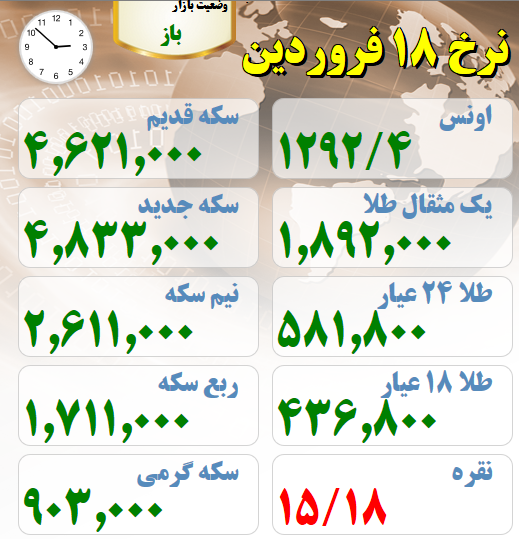 قیمت های بازار طلا و سکه نیمروز هجدهم فروردین ماه :