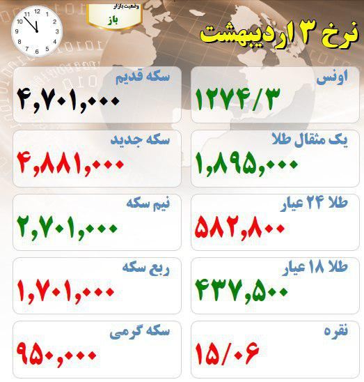 نرخ طلا و سکه مورخ 3 اردیبهشت