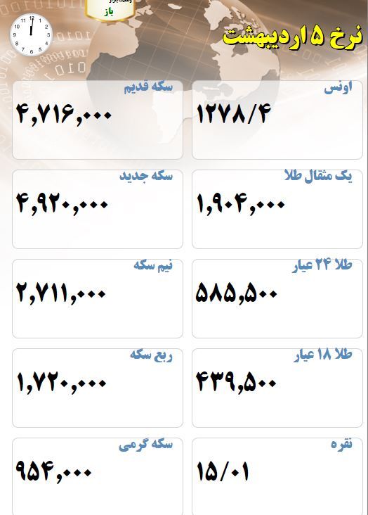 نرخ طلا و سکه مورخ 5 اردیبهشت