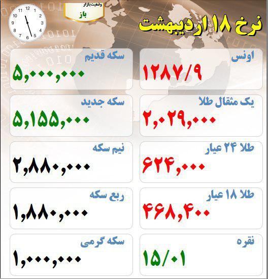 قیمت سکه و طلا در مبادلات امروز 18 اردیبهشت
