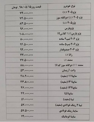 قیمت خودروهای پرفروش در بازار امروز (سهشنبه) به شرح زیر است:
