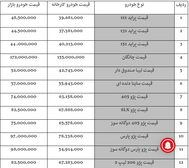 قیمت خودروهای داخلی در بازار امروز 1398/05/16 بهشرح زیر است:
