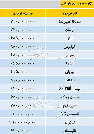 قیمت انواع خودروهای وارداتی/ جدول دنیای اقتصاد قیمت انواع خودروهای وارداتی را اعلام کرد. تاریخ: ۲۳/مرداد/۹۸ ساعت ۱۱:۳۷ | خودرو شناسه خبر: ۵۷۳۰۰ منبع: خبر آنلاین خبر را برای من بخوان جدول زیر قیمت انواع خودروهای پرفروش وارداتی در بازار اعلام شده است. برچسب ها : قیمت خودروی برقی