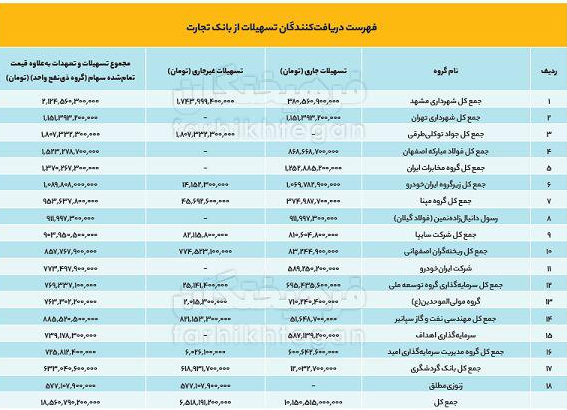 لیست افراد و کسانی که به بانک تجارت بدهی دارند منتشر شده که در ردیف هجدم دریافتکنندگان بیشترین تسهیلات از بانک تجارت، نامآشنای دیگری به چشم میخورد که همواره بهعنوان یک ابرسرمایهدار شناخته میشود. محمدرضا زنوزیمطلق که جزء بزرگترین بدهکاران بانکی کشور است، سهامدار، مدیر و مالک چندین شرکت صنعتی، تولیدی، علمی، خدماتی و بانکی است. ریاست هیات بدمینتون استان آذربایجانشرقی، کوچکترین سمت او به حساب میآید. او در سال ۹۱ بهخاطر بدهی بانکی روانه زندان شد که با پرداخت ۱۳۸۰ میلیارد تومان از بدهیهای خود و تعویق بقیه بدهیها آزاد شد. میزان تسهیلات غیرجاری زنوزیمطلق، 577 میلیارد و 107 میلیون و 900 هزار تومان است.