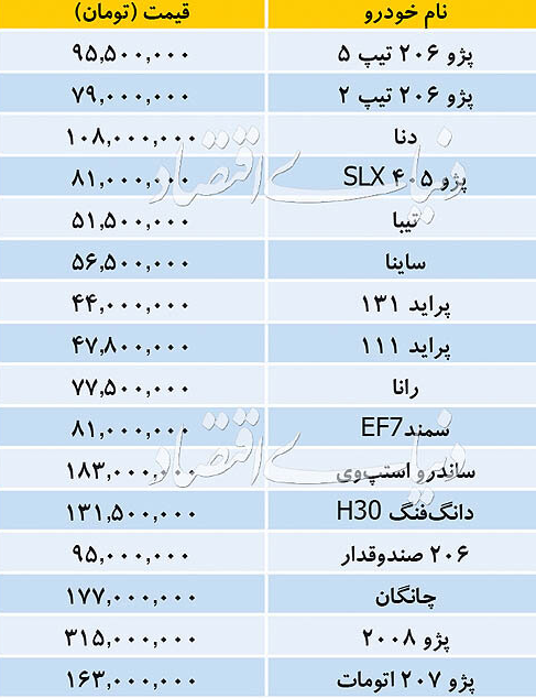 قیمت انواع خودرو/ ۲۰۷ اتومات ۱۶۳ میلیون تومان شد قیمت انواع خودروهای داخلی پرفروش اعلام شد. تاریخ: ۱۱/شهريور/۹۸ ساعت ۰۹:۵۴ | خودرو شناسه خبر: ۵۸۱۰۵ منبع: خبر آنلاین خبر را برای من بخوان جدول زیر نشان دهنده قیمت انواع خودرو در بازار است. برچسب ها : قیمت خودرو بازار