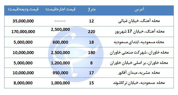 یک دستگاه واحد تجاری و اداری ۱۸ متری واقع در منطقه مسعودیه، ابتدای مسعودیه با مبلغ ۶۰۰ هزار تومان اجاره و ۵ میلیون تومان ودیعه معامله میشود.
