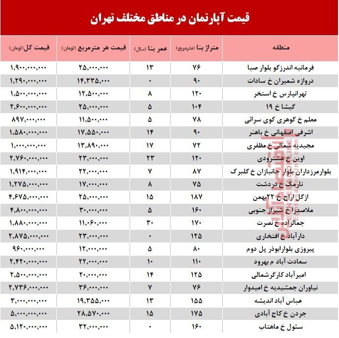 خرید مسکن در مناطق ۲۲ گانه تهران چقدر پول میخواهد؟ آنچه در زیر میآید جدول قیمت معاملات انجام شده آپارتمان در مناطق مختلف شهری تهران طی شهریور ماه ۹۸ است. تاریخ: ۲۶/شهريور/۹۸ ساعت ۱۲:۵۲ | اقتصاد ایران شناسه خبر: ۵۸۸۹۰ منبع: خبرانلاین خبر را برای من بخوان برچسب ها : قیمت مسکن مناطق ۲۲ گانه تهران