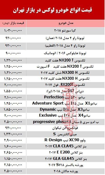 خودروهای لوکس در پایتخت چه قیمتی دارند؟ آنچه در زیر میآید قیمت روز انواع خودروهای لوکس و وارداتی در سطح بازار پایتخت طی شهریور ماه۹۸ است که ممکن است تا ۵ درصد در مناطق مختلف تهران دارای نوسان باشد. تاریخ: ۲۷/شهريور/۹۸ ساعت ۱۹:۲۶ | خودرو شناسه خبر: ۵۸۹۴۷ منبع: خبرانلاین خبر را برای من بخوان برچسب ها : خودرو کوکس قیمت