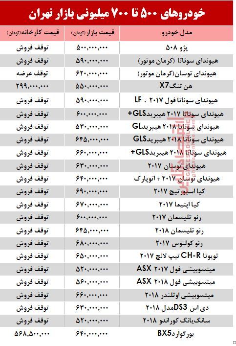 با ۷۰۰ میلیون چه خودرویی میتوان خرید؟ آنچه در زیر میآید قیمت روز خودروهای صفر بازار تهران طی شهریور ماه ۹۸ است که بین ۵۰۰ تا ۷۰۰ میلیون تومان در سطح بازار قیمت خورده که ممکن است تا ۵ درصد در مناطق مختلف تهران دارای نوسان باشد؛ تاریخ: ۳۰/شهريور/۹۸ ساعت ۱۴:۵۹ | خودرو شناسه خبر: ۵۹۰۶۹ منبع: اقتصاد انلاین خبر را برای من بخوان برچسب ها : خودرو قیمت هیوندای