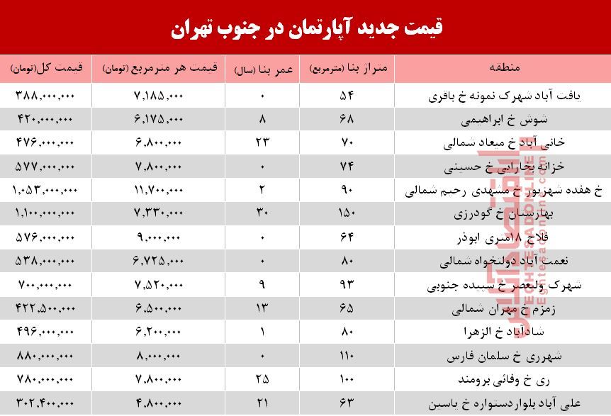 نرخ جدید آپارتمان در جنوب تهران؟ +جدول