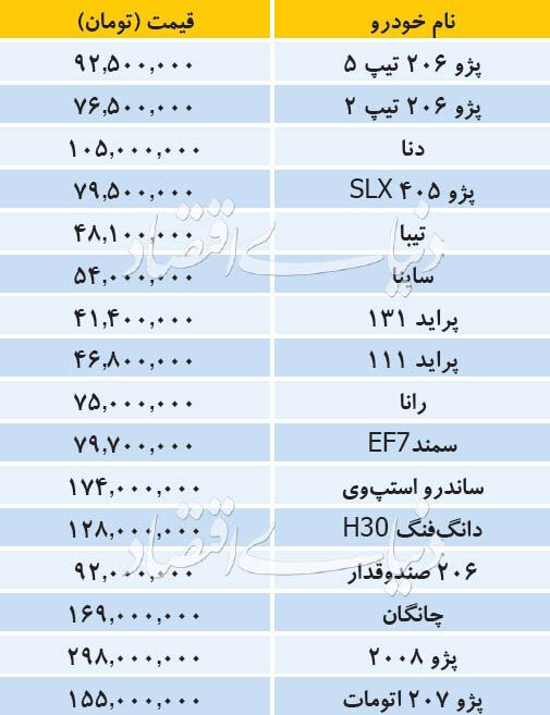اعلام قیمت خودروهای داخلی/ پراید ۱۳۱ به ۴۱.۴ میلیون تومان رسید قیمت خودروهای پرفروش اعلام شد تاریخ: ۳۱/شهريور/۹۸ ساعت ۰۹:۴۰ | خودرو شناسه خبر: ۵۹۰۹۷ منبع: خبرانلاین خبر را برای من بخوان جدول زیر نشان دهنده قیمت خودروهای پرفروش داخلی در بازار است. برچسب ها : خودرو قیمت پرفروش