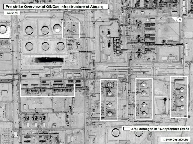 رییس جمهور در ادامه با بیان اینکه آمریکا خسارت آرامکو را بیشتر از آنچه هست تبلیغ میکند، ادامه داد: خساراتی که در دو هفته جبران میشود را میگویند تا یک ماه جبران آن طول میکشد. هدف آمریکا تصرف منطقه است. آنها میخواهند کل نفت شرقی عربستان سعودی را در مشت بگیرند، البته این دعوا دعوای مخصوص ما نیست. دعوای مخصوص آمریکا و چین است و آنها از این مسائل منطقه سوءاستفاده میکنند و دنبال قراردادهای نظامی جدید هستند و سروصداها برای حضور بیشتر در منطقه است. ما در این شرایط طرحی را به نام ابتکار صلح هرمز به سازمان ملل میبریم که اساس آن همکاری جمعی کشورهای درون منطقه خلیج فارس است، البته این طرح فقط امنیتی نیست بلکه اقتصادی و سیاسی هم هست.