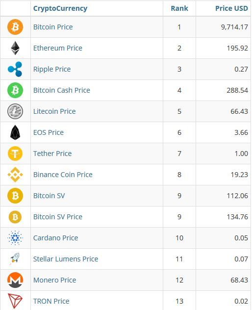 در بازار ارز های دیجیتال بیت کوین با تغییرمنفی 2.11 درصدی نسبت به دیروز به مبلغ 9714 دلار رسید و سایر ارز های دیجیتال عبارست از: