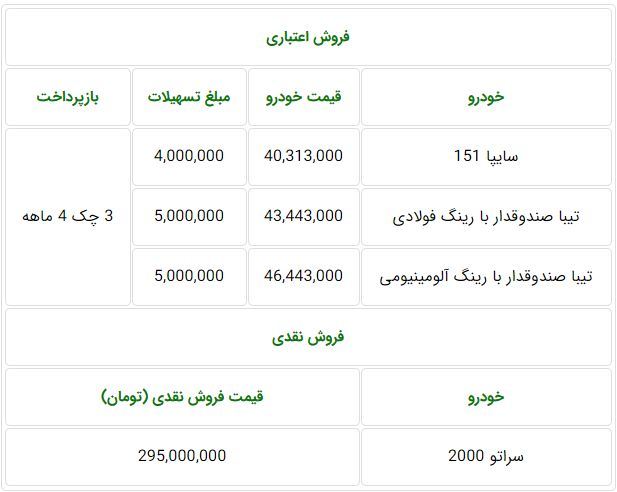 فروش فوری نقدی و اقساطی ۳ محصول سایپا برای امروز + شرایط