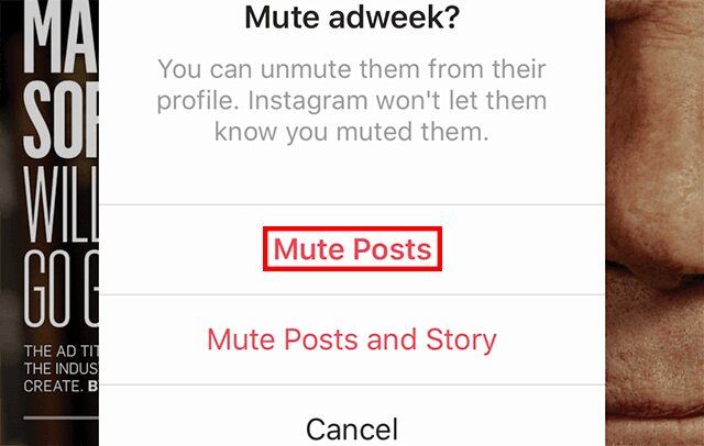 برای این کار کافیست بر روی آیکون تصویر پروفایل فرد موردنظر که استوری گذاشته است، ضربه زده و انگشت خود را اندکی نگه دارید. سپس یک پیغام با سه گزینه برای شما بر روی صفحه نمایش گوشی ظاهر می شود که شامل mute posts ، mute posts and story و cancel است.