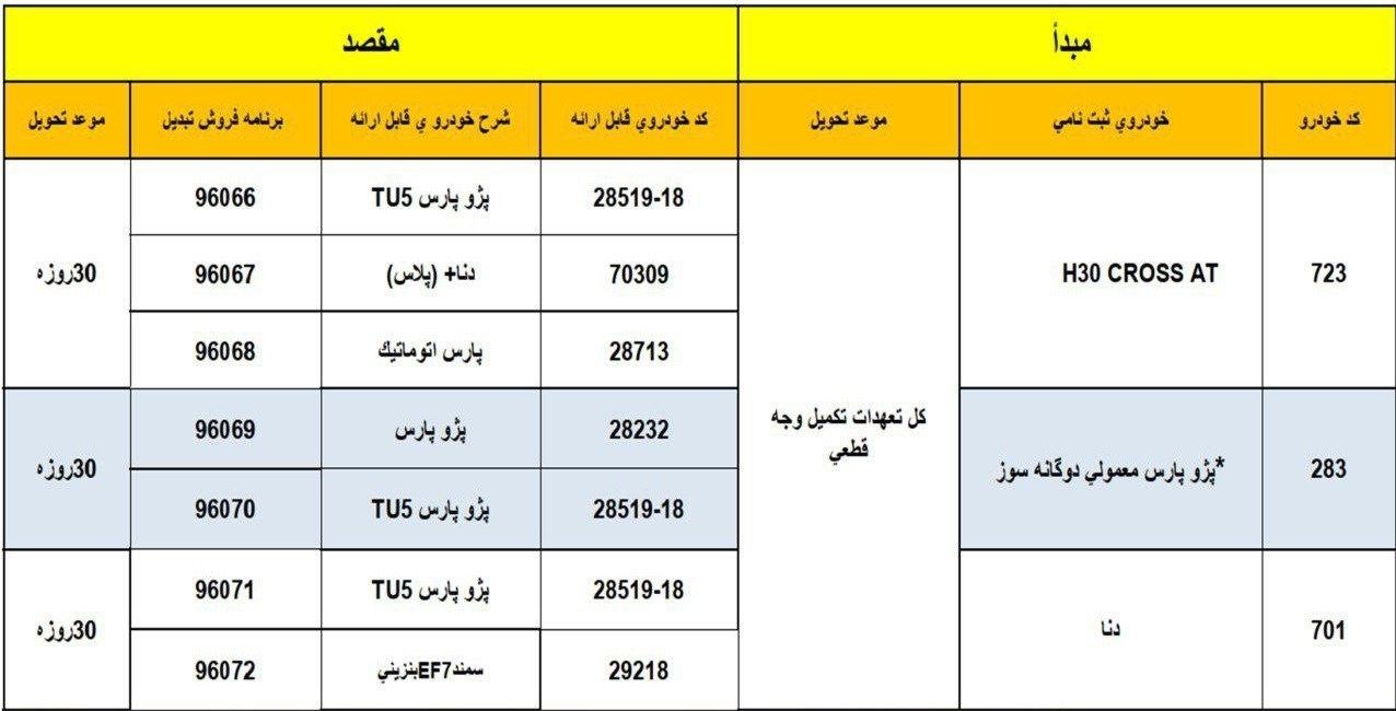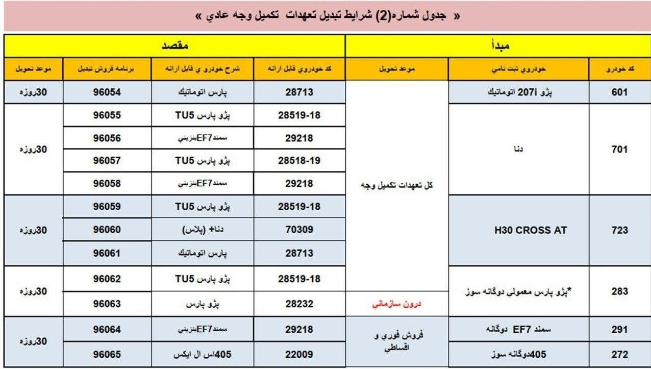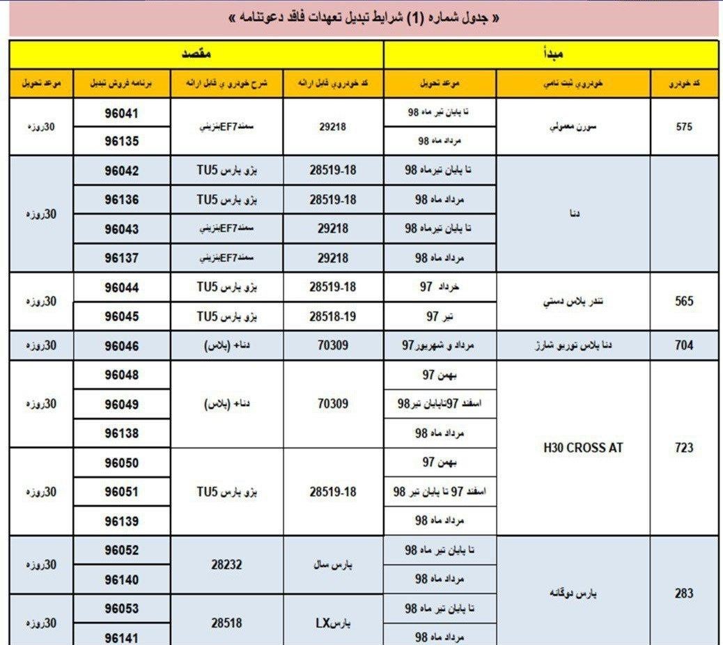 دارندگان قراردادهای فوق جهت تعیین تکلیف تعهدات نسبت به تبدیل تعهدات به سایر خودروها مطابق جدول زیر اقدام خواهد شد.
