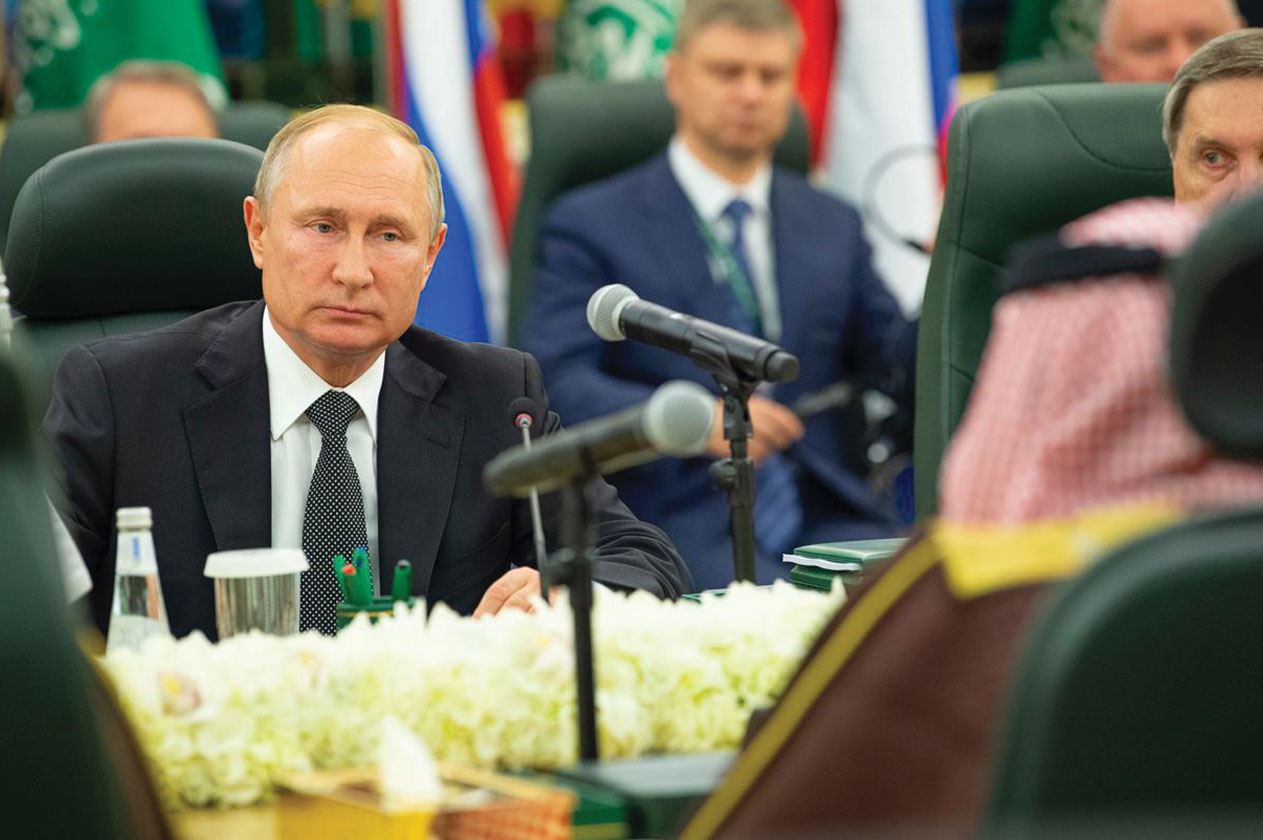 در حالی که افسران روس به شدت مشغول تنظیم تحرکات میدانی در مناطق ملتهب سوریه بودند، ولادیمیر پوتین ظهر دوشنبه وارد عربستان شد. وی در جریان این سفر، ۲۰ توافق اقتصادی و تجاری با این کشور امضا کرد. پس از عربستان، پوتین عازم امارات شد و آنجا نیز توافق‌های متعددی امضا کرد.