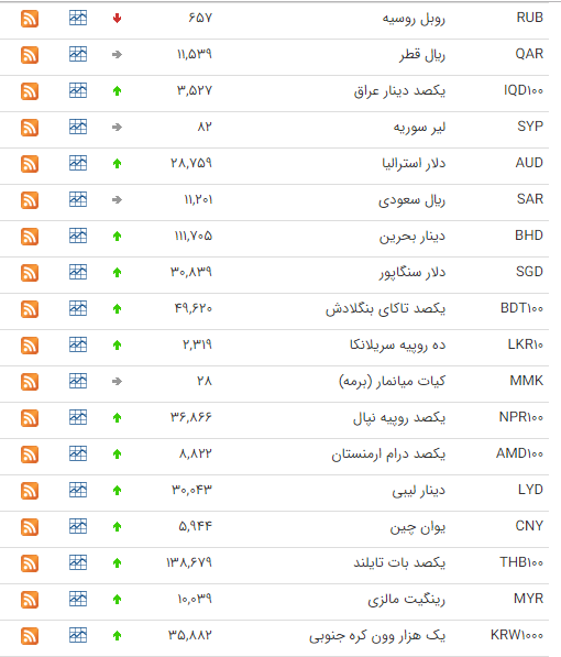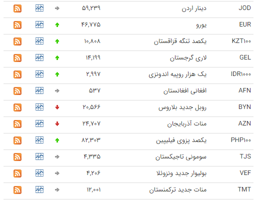 بانک مرکزی نرخ رسمی ۴۷ ارز را اعلام کرد که بر اساس آن نرخ ۲۸ ارز مانند یورو و پوند نسبت به روز گذشته(چهارشنبه) افزایش و قیمت ۷ واحد پولی دیگر کاهش یافت؛ نرخ دلار و ۱۱ ارز دیگر نیز ثابت ماند.