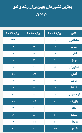 گزارش جهانی کودک در سال ۲۰۱۹ نشان میدهد که سنگاپور، سوئد و فنلاند بهترین کشورهای جهان برای گذراندن دوران کودکی سلامت، مفید و کم خطرتر هستند.
