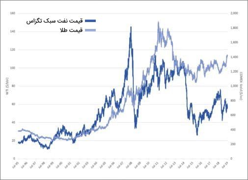 اما به نظر میرسد این رابطه اخیراً به هم خورده باشد؛ در یک سال اخیر قیمت طلا 23 درصد افزایش یافته است اما قیمت نفت سبک تگزاس در همین دوره با کاهش 12 درصدی مواجه شده است. حتی حمله گسترده به تأسیسات نفتی شرکت سعودی آرامکو که به کاهش 5 درصدی عرضه جهانی نفت منجر شد و رکورد کاهش یکروزه عرضه نفت در تاریخ صنعت نفت جهان را شکست نیز تنها برای یک روز معاملاتی قیمت نفت را افزایش داد و درنهایت کمکی به افزایش پایدار قیمت نفت نکرد.