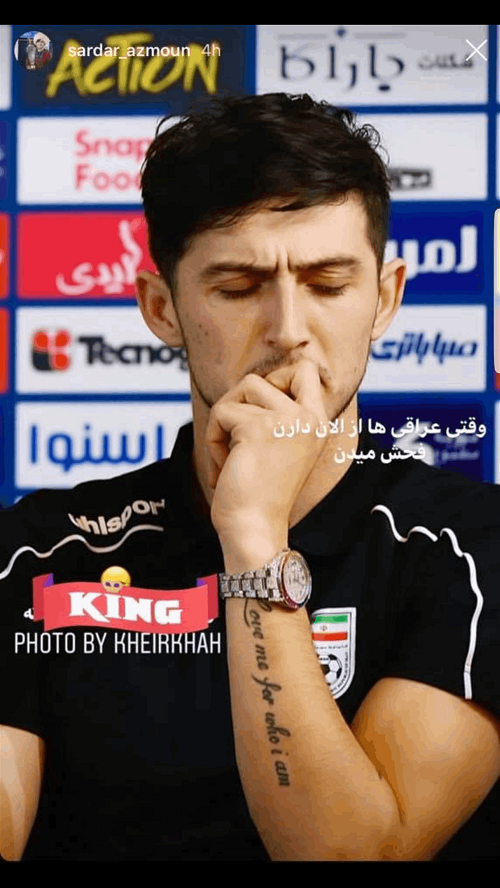 السومریه نوشت: مسی ایران با دو تصویر که منتشر کرد به رفتار هواداران عراقی واکنش نشان داد. او در تصویر اولی نوشت وقتی که هواداران عراق از همین الان دشنام می دهند و در دومی نوشت که این هم واکنش من است.