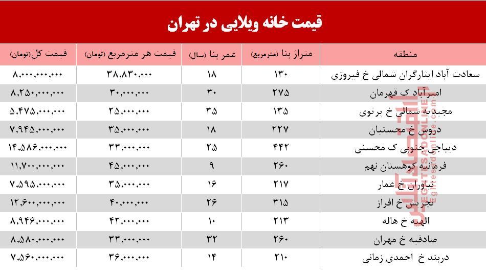 خانه‌های ویلایی تهران چند است؟
