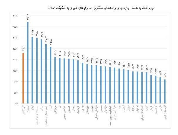 بر اساس گزارش مرکز آمار ایران، درحالی بیشترین نرخ تورم نقطه به نقطه اجاره مسکن مربوط به استان لرستان با ٣٧.٢ درصد افزایش بوده، متوسط افزایش هزینه اجاره بها برای کل خانوارهایی که تمدید قرارداد داشتهاند، در فصل تابستان ١٣٩٨ برابر با ٢٧,١ درصد است.