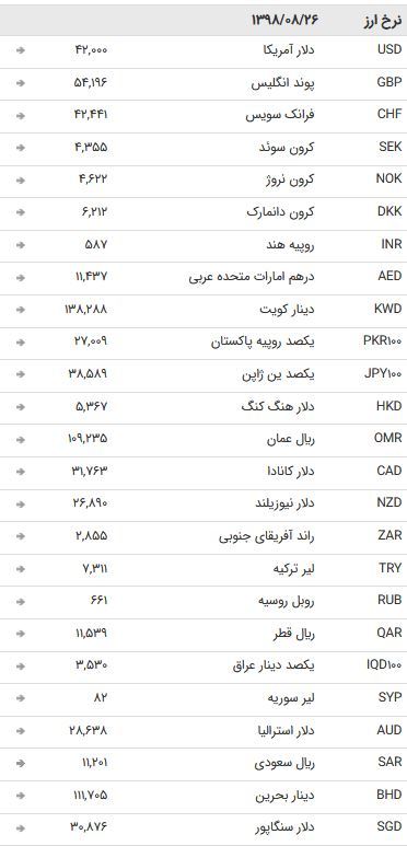 بانک مرکزی نرخ رسمی ۴۷ ارز را اعلام کرد که بر این اساس نرخ تمام اسعار بانکی به علت تعطیلات آخر هفته میلادی ثابت ماندند.