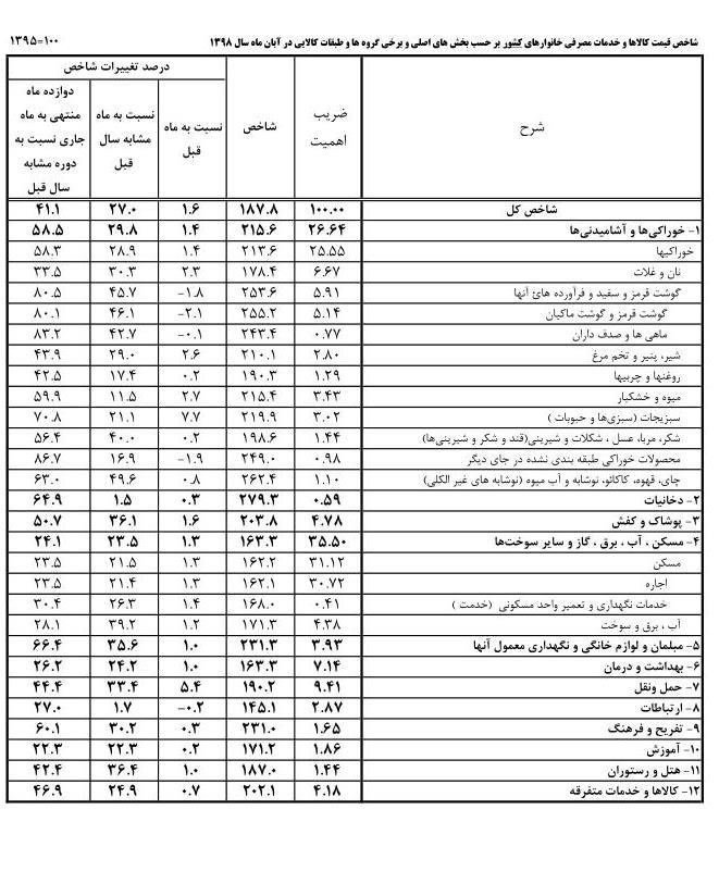 بررسی گزارش مرکز آمار نشان می‌دهد، در آبان ماه خوراکیها و آشامیدنیها شاهد تورم ۵۸ درصدی بوده‌اند.