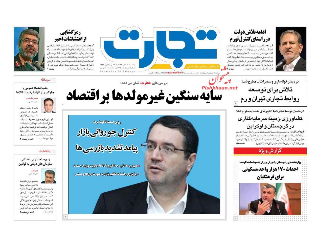 تصاویر صفحه نخست روزنامه های اقتصادی ۳ آذر به شرح زیر است: