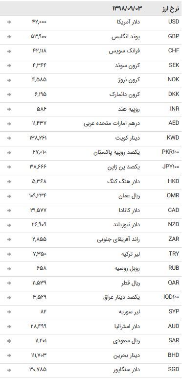 از طرفی بانک مرکزی نرخ رسمی ۴۷ ارز را اعلام کرد که بر این اساس نرخ تمام اسعار دولتی به علت تعطیلات آخر هفته میلادی ثابت ماند.