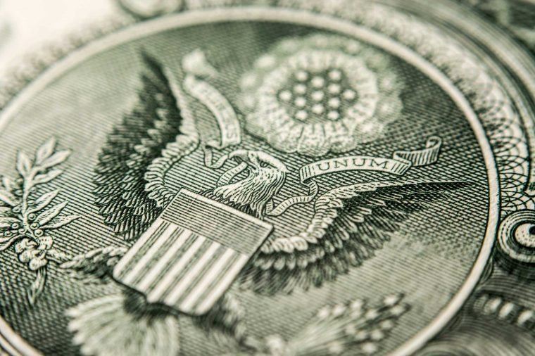 عقاب پشت اسکناس یک دلاری، یک شاخه زیتون (نماد صلح) در پنجه دارد و در پنجه سمت چپ نیزه (نماد جنگ) گرفته است. اما بین سالهای ۱۸۰۱ تا ۱۸۰۷ روی سکههای نقرهای دلار، این علایم جابجا شد. به این معنا که شاخه زیتون در پنجه چپ و نیزه در پنجه راست قرار گرفت. دیپلماتهای اروپایی و روزنامهنگاران ادعا کردند که این جابجایی دلیلی برای آغاز جنگ است. از این رو، آمریکا تصمیم گرفت علایم صلح را به سمت راست برگرداند.
