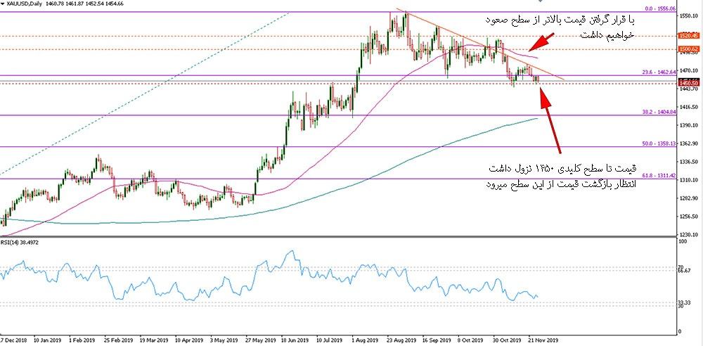 سطح ۱۴۵۰ از سطوح کلیدی این بازار می باشد که پیشتر نیز به عنوان حمایت قدرتمندی عمل کرده است و احتمال بازگشت قیمت از این سطح میرود.