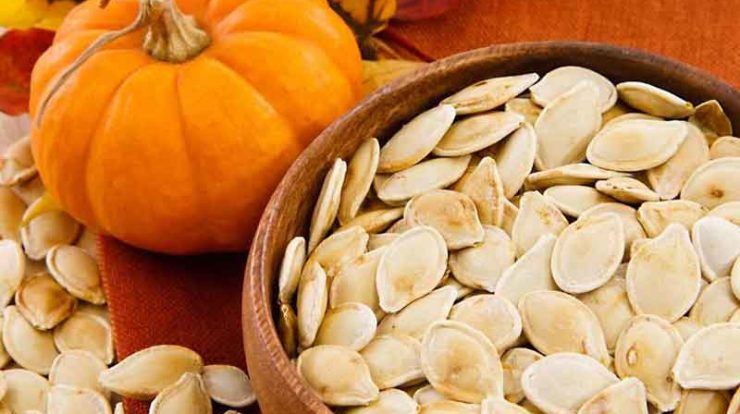 تخمه کدو یکی از بهترین مواد برای کاهش وزن است که به کوچک کردن شکم و پهلو کمک زیادی می‌کند؛ ۲۸ گرم تخمه کدو پنج گرم پروتئین دارد کمی کمتر از پروتئینی که در تخم مرغ هم یافت می‌شود و سرشار از مواد مغذی برای داشتن شکمی صاف است، فیبر، روی و پتاسیم موجود در آن برای ساخت و بازیابی عضلات بسیار حیاتی هستند، برای آب کردن شکم تخمه کدو را روی سالاد‌ها یا روی جو دو سر بریزید و آن را هر شب میل کنید.