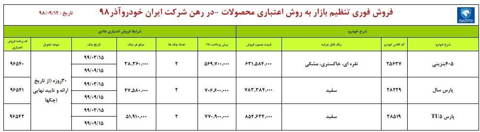 طرح جدید فروش اقساطی ۳ محصول ایران خودرو از روز سهشنبه ۱۲ آذرماه آغاز خواهد شد.
