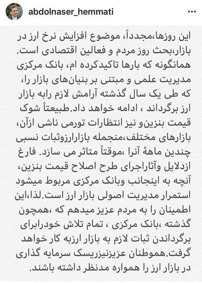 یادداشت جدید آقای همتی از اوضاع ارز در کشور: