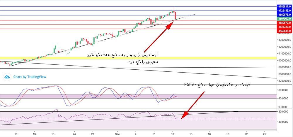 در صورت قرار گرفتن قیمت پایین تر از سطح 4580000 سطح هدفی نزولی بعدی 4530000 در نظر گرفته خواهد شد.