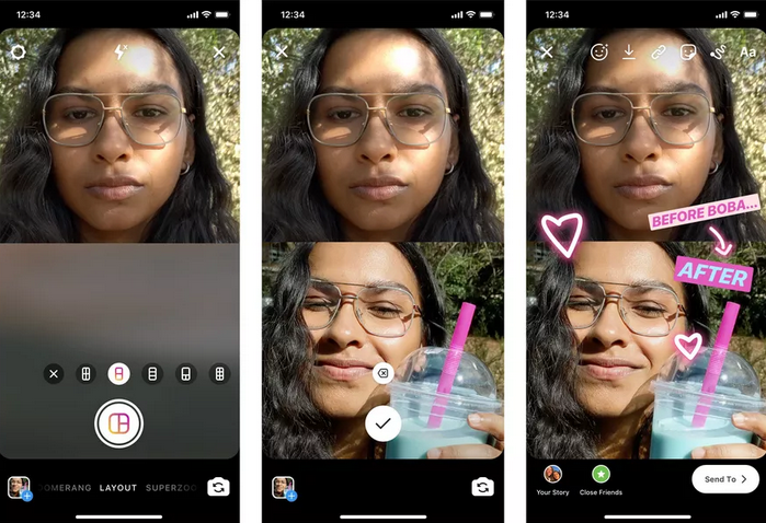 کار با این ابزار جدید در اینستاگرام بسیار راحت بوده و اینستاگرام با عرضه این قابلیت صرفا سعی کرده است کاری کند تا کاربران برای کنار هم قرار دادن تصاویر خود به نرم افزارهای شخص ثالث رجوع نکنند؛ تا پیش از این در صورتی که کاربران نمیخواستند از نرم افزارهای شخص ثالث استفاده کنند، میتوانستند در دستگاه اندرویدی خود تصویر مورد نظرشان را کپی و آن را در جعبه متن استوری جایگزاری کنند اما اکنون کنار هم قرار دادن تصاویر به طور مستقیم و از داخل بخش استوری اینستاگرام امکان پذیر است.