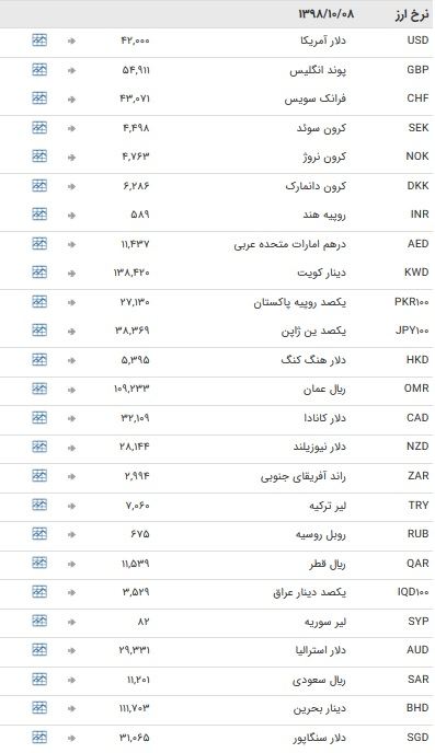 به گزارش سایت طلا ، امروز یکشنبه هشتم ماه دی قیمت ارز صرافی ملی اعلام شد.