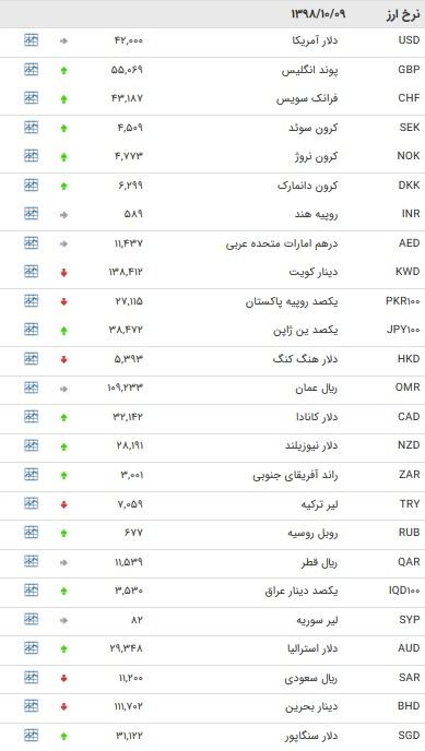 دلار و يورو درجا زد/نرخ ۴۷ ارز بین بانکی در ۹ دی / صعود نرخ ۲۷ ارز رسمی