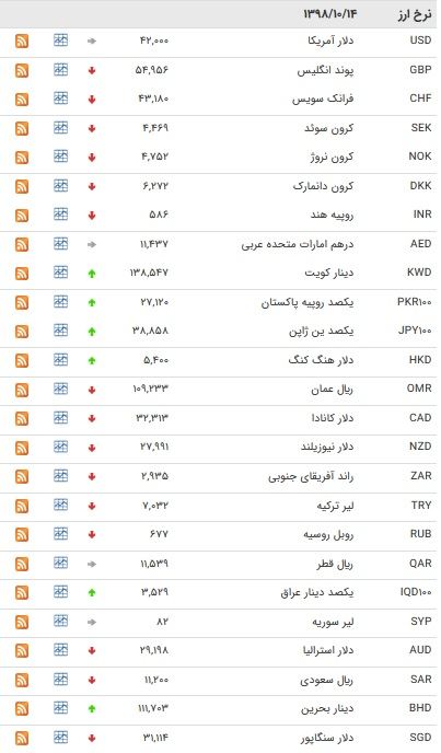 بانک مرکزی نرخ رسمی ۴۷ ارز را اعلام کرد که بر اساس نرخ ۷ ارز بین بانکی ثابت ماند، ۲۷ ارز کاهش و ۱۳ ارز افزایش یافت.