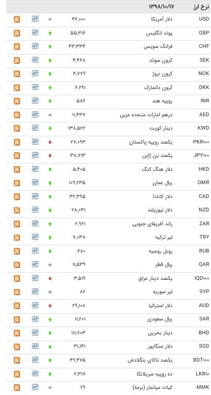 نرخ ارز در صرافی ملی امروز در حالی اعلام شد که قیمت دلار و یورو افزایش یافتند و بهای یورو با ۱۵۰ تومان رشد به ۱۴ هزار و ۹۸۰ تومان رسید.همچنین بانک مرکزی نرخ رسمی ۴۷ ارز را اعلام کرد که بر اساس نرخ ۹ ارز بین بانکی ثابت ماند، ۹ ارز کاهش و ۲۹ ارز افزایش یافت.