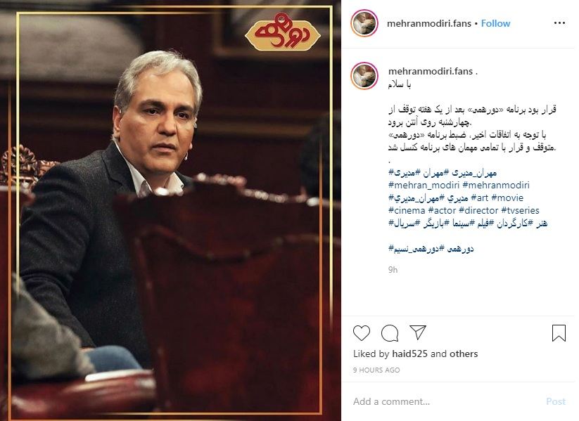این مطلب در صفحه شخصی مهران مدیری هم دیده می‌شود.