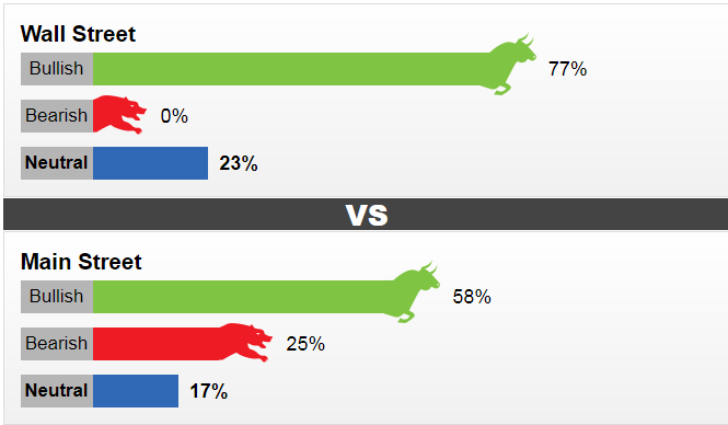 در نظرسنجی آنلاین از سرمایه گذاران مین استریت نیز 820 نفر شرکت کردند که 475 نفر معادل 58 درصد اعلام کردند قیمت طلا افزایش خواهد یافت. 208 نفر معادل 25 درصد به کاهش قیمت طلا رای دادند و 137 نفر معادل 17 درصد اعلام کردند قیمت طلا تغییر نمی کند.