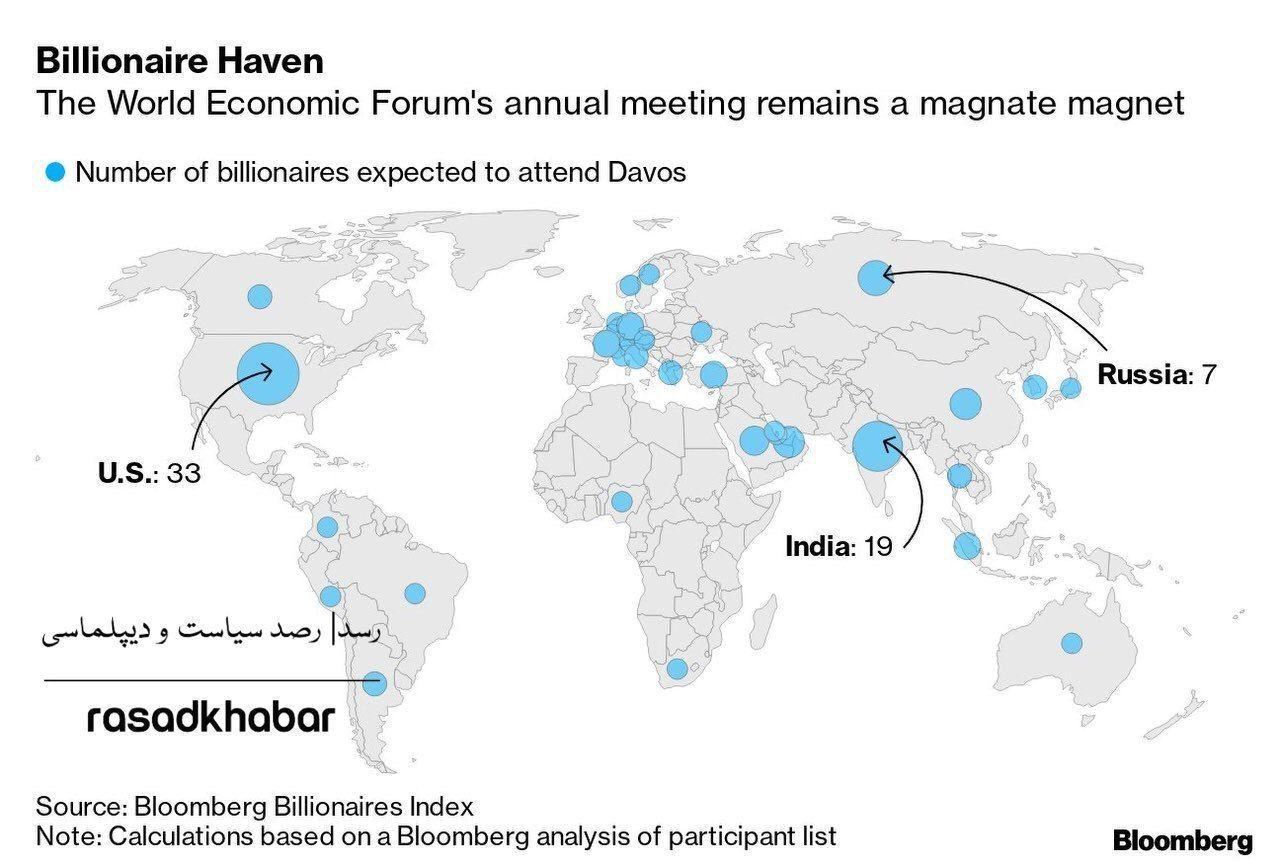 اجلاس داووس كه هفته آينده برگزار مى شود ، ميزبان ١١٩ ميلياردر جهان است كه ارزش دارايى آنها بيش از ٥٠٠ ميليارد دلار است