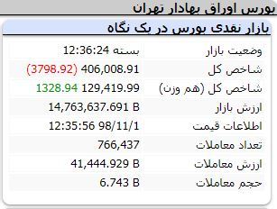 بورس امروز هم عقب نشست/کاهش 3798 واحدی شاخص بورس تهران